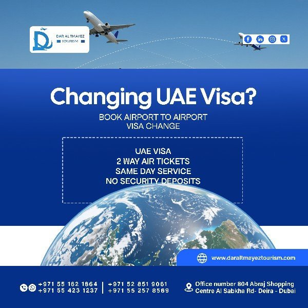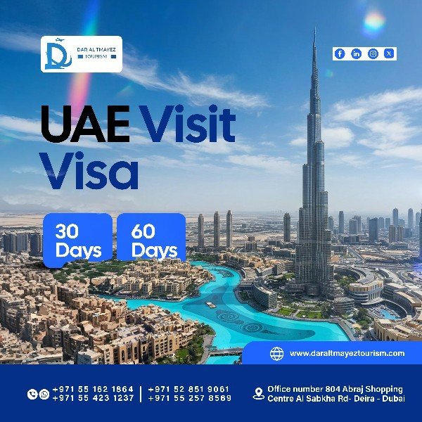 Dubai Visit Visas – 30-day, 60-day, and convenient A2A (Airport-to-Airport) visa change services.